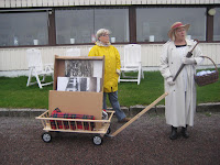 On Wednesday evening some of us went on a guided tour, which turned out to be like nothing we had ever experienced. It was a nice, light evening and we were looking forward to a good walk along the beautiful beach of Gottskär. We met up in the harbour, and were greeted by a rather large group of very friendly elderly people. It turned out that they together were our guide. The tour started by them pulling out some enlarged photographs of the area as it used to be 50-100 years ago. They placed themselves on a line each with a photograph so that we could study them carefully. One of the photos pictured a young women in a white dress and straw hat, and one of the elderly women wore a similar attire, a fact which they all pointed out to us repeatedly and excitedly.